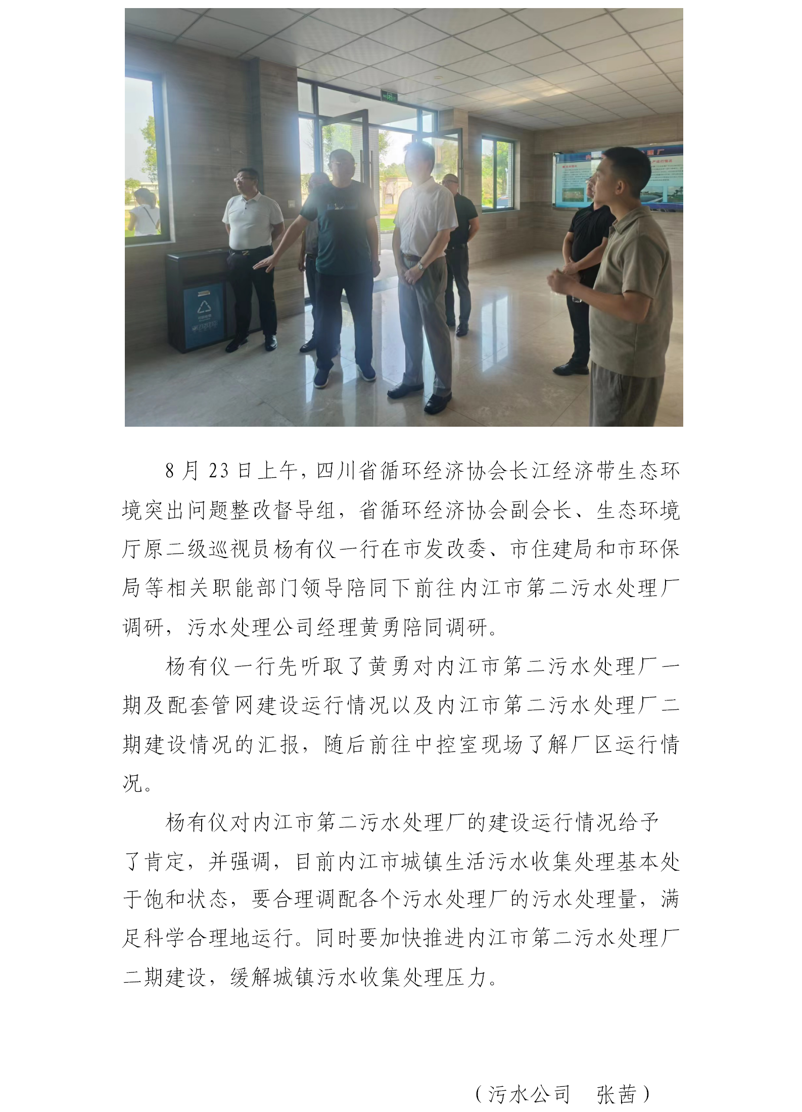 四川省循環(huán)經(jīng)濟(jì)協(xié)會(huì)長江經(jīng)濟(jì)帶生態(tài)環(huán)境突出問題整改督導(dǎo)組調(diào)研內(nèi)江市第二污水處理廠