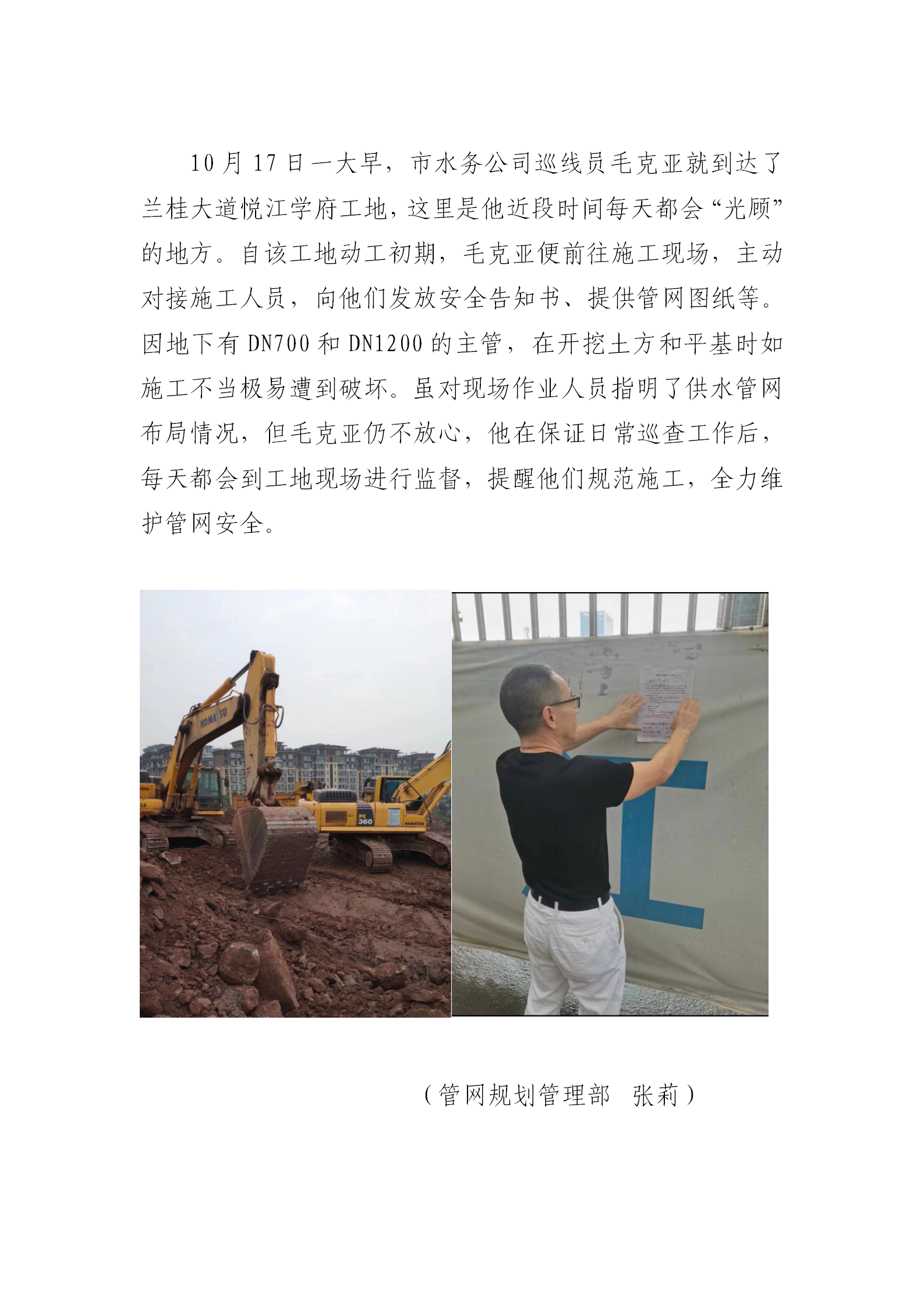 施工現(xiàn)場勤“光顧 管網(wǎng)安全我維護(hù)